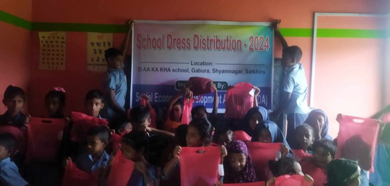 “O AA KA KHA School,” Sundarban branch, serves underprivileged boys and girls of the Sundarbans. They come to school in new clothes every year. As in previous years, the little children are delighted to receive new clothes this year. The Socio-Economic Development Alliance (SEDA) financed the new uniforms for everyone.